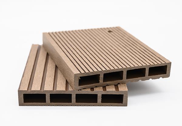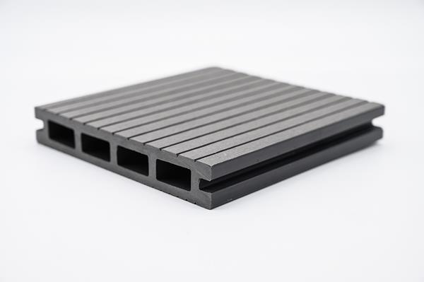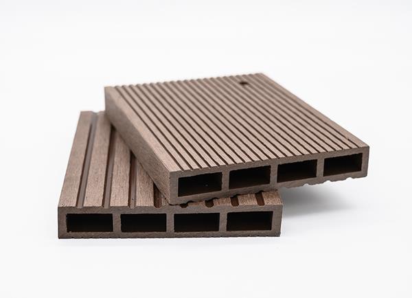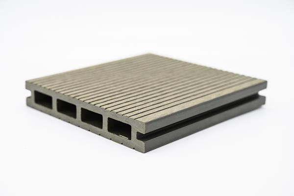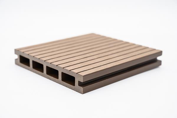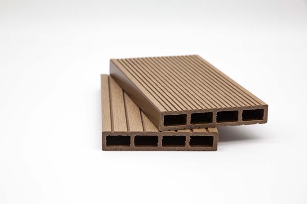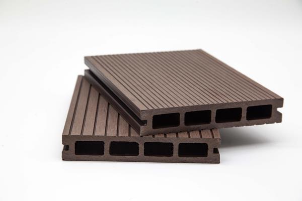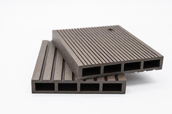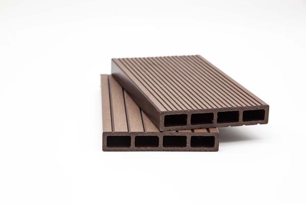 Συνθετικό δάπεδο Deck WPC εξωτερικού χώρου που αποτελείται από 55% ξύλο και 35% HDPE και 10% ρητίνες, UV σταθεροποιητές κλπ. Είναι διπλής επίστρωσης (Co – extrusion) με ανάγλυφα νερά φυσικού ξύλου. Η μια πλευρά είναι ανοικτό καφέ και η άλλη σκούρο καφέ (Wenge).